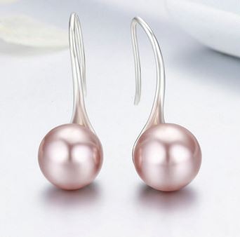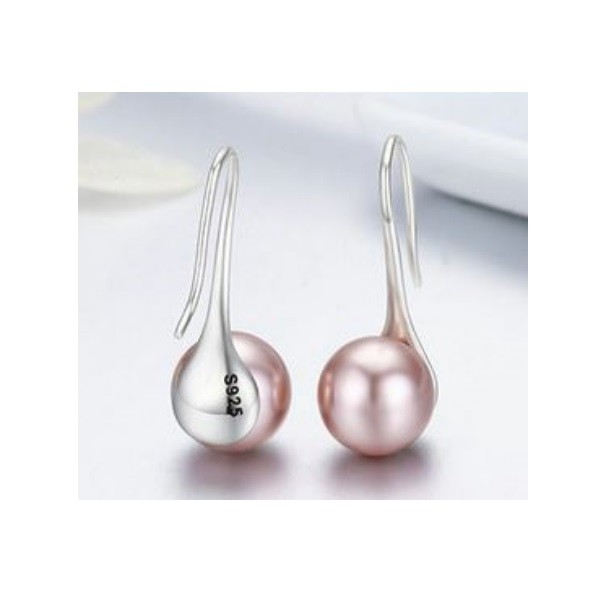 Elegantné strieborné náušnice s veľkou perlou. Jeho priemer je 2,4 cm, váha 3,5 g.