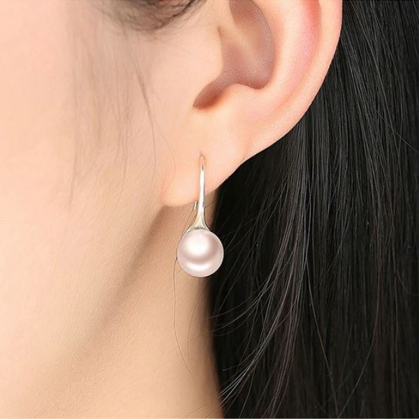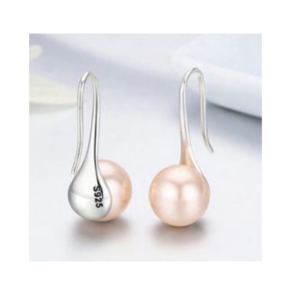 Elegantné strieborné náušnice s veľkou perlou. Jeho priemer je 2,4 cm, váha 3,5 g.