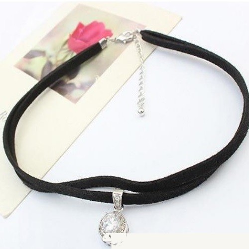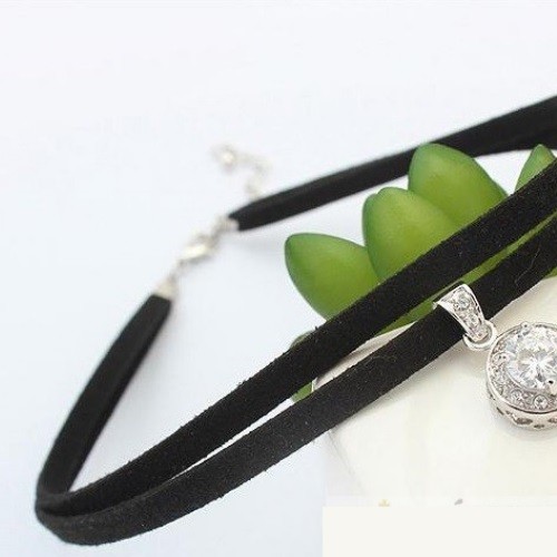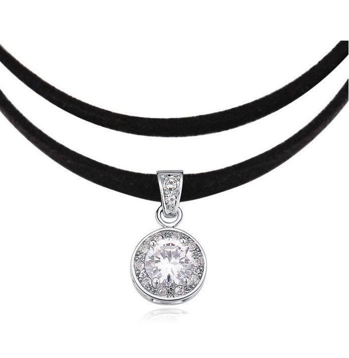 Štýlový dvojitý kožený náhrdelník s okrúhlym zirkónovým kameňom.