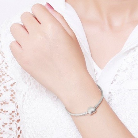 Jednoduchý strieborný náramok s motívom srdca, 17 cm