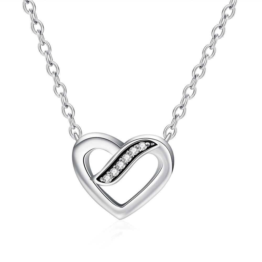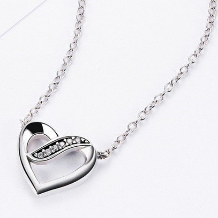 Strieborný náhrdelník s kamienkovou vložkou, prívesok v tvare srdca.