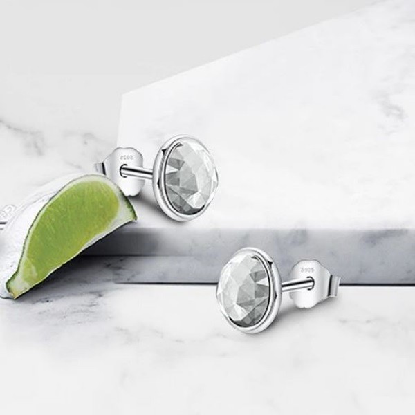Strieborné, zásuvné náušnice so zirkónovým kryštálom, ktorého leštený povrch dodáva krásny lesk.