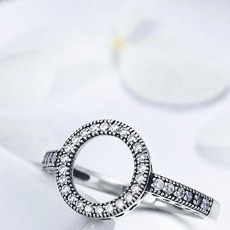 Elegantný štýlový prsteň vyrobený zo striebra, zdobený zirkónovými kamienkami.