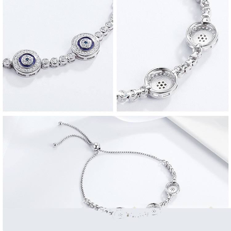 Strieborný tenisový náramok s modrým vykladaním