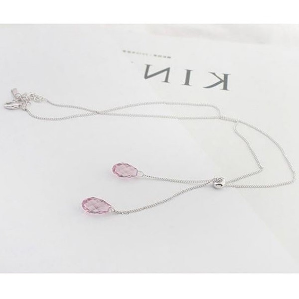 Elegantná súprava šperkov pozostávajúca z náhrdelníka a napichovacích náušníc. Tvar kvapky vody je vyrobený z krištáľu Swarovski. Veľkosť prívesku je 6,0 x 0,5 cm, náušnica 6,5 x 0,5 cm. Dĺžka náhrdelníka je 40 + 5 cm, materiál je rhodiovaná meď, ostatné časti sú z rhodiovanej zliatiny. Ihla náušnice je z nehrdzavejúcej lekárskej ocele.