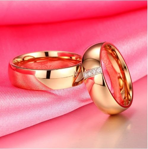 Pánska svadobná obrúčka vyrobená z nerezovej ocele zlatej farby. Šírka obrúčky je 6 mm, váha je 5,1 g. Snubná obrúčka je vyrobená z pevnej nerezovej ocele. Jeho farba je 100% odolná voči opotrebovaniu