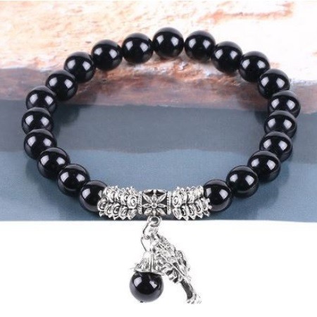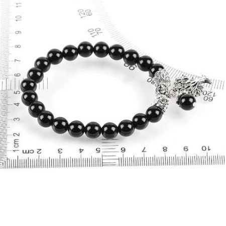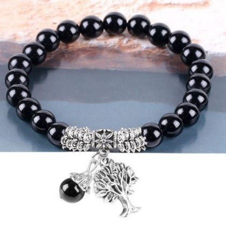 Meditačný náramok s 8 mm čiernymi ónyxovými korálkami a príveskom strom života. Onyx má silný vplyv na mozgovú činnosť, zlepšuje koncentráciu, ale možno ho použiť aj proti Alzheimerovej chorobe a epilepsii. Ovplyvňuje uši a ich choroby, ako napr zápal ucha, - bolesť, - bzučanie, strata sluchu. Je účinný aj pri poruchách zraku. Posilňuje imunitný systém.