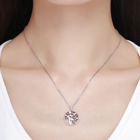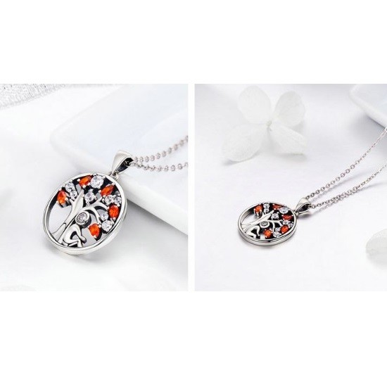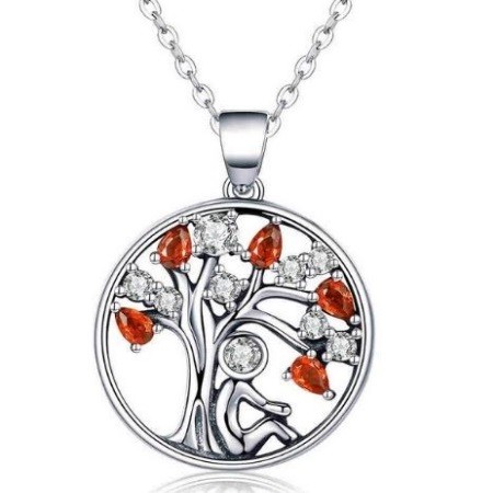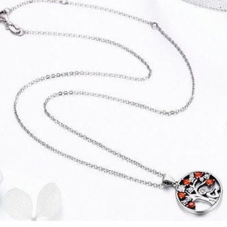 Strieborný náhrdelník s príveskom strom života, červená