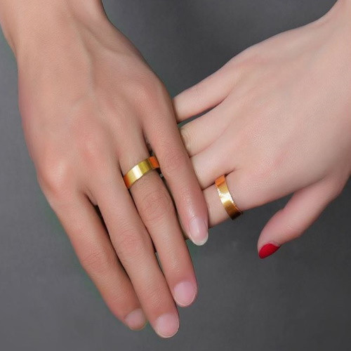 Jednoduchý, ale elegantný pánsky svadobný prsteň vyrobený z nerezovej ocele s matným zlatým povrchom. Šírka 6 mm, váha 5,6 g Snubný prsteň je vyrobený z pevnej nerezovej ocele. Jeho farba je 100% odolná voči opotrebovaniu