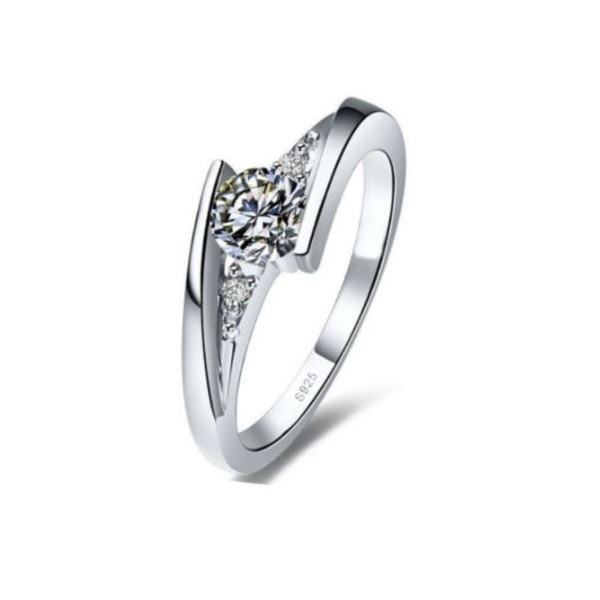 Dámsky zásnubný prsteň, klasický, strieborný, veľkosť 8
