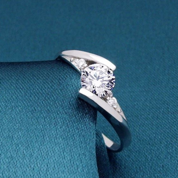 Dámsky zásnubný prsteň, klasický, strieborný, veľkosť 7