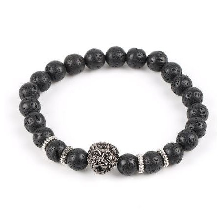 Náramok vyrobený z čiernych lávových kameňov a prívesku s hlavou leva. Vzhľadom na pórovitý materiál lávového kameňa je vhodné nakvapkať naň pár kvapiek esenciálneho oleja (napr. levanduľový) a zachovať jeho vôňu po celý deň.