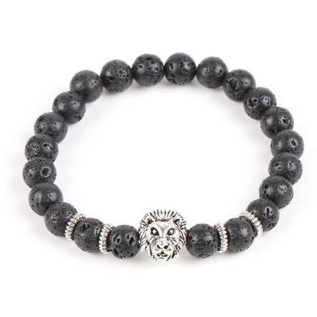 Náramok vyrobený z čiernych lávových kameňov a starožitného strieborného prívesku s hlavou leva. Vzhľadom na pórovitý materiál lávového kameňa je vhodné nakvapkať naň pár kvapiek esenciálneho oleja (napr. levanduľový) a zachovať jeho vôňu po celý deň.