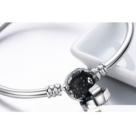Tento strieborný náramok zdobí motív oka zdobený modrými a bielymi zirkónovými kamienkami. Veľkosť motívu je 1,1 x 1,1 cm.