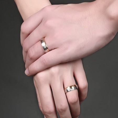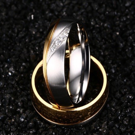 Dámska obrúčka z nerezovej ocele, v zlatej farbe Snubná obrúčka je vyrobená z masívnej nerezovej ocele. Jeho farba je 100% odolná voči opotrebovaniu