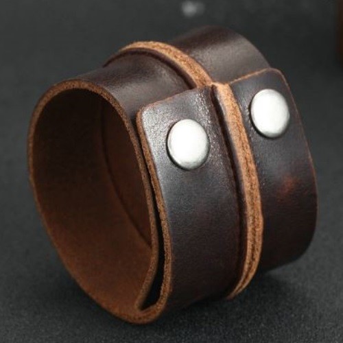 Široký náramok, kožený, hnedý, s kovovým zapínaním