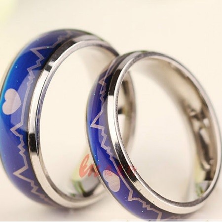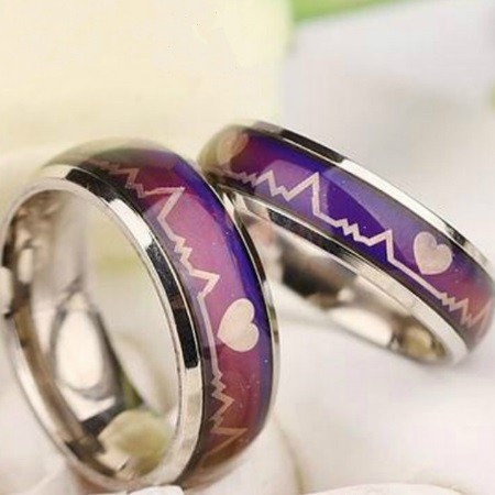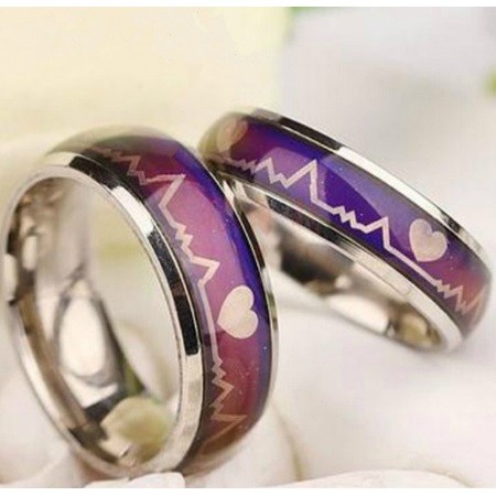 Módny, farbu meniaci prsteň so srdiečkovým vzorom.