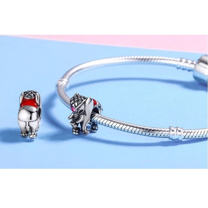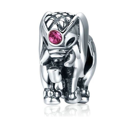 Strieborný slonový prívesok zdobený ružovým krištáľom. Na náramok alebo náhrdelník.
