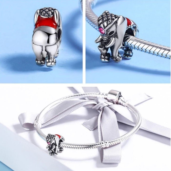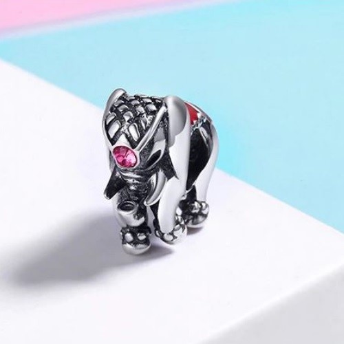Strieborné kúzlo slona so zirkónovým kryštálom