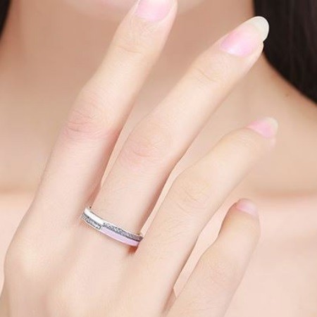 Strieborný prsteň s kamienkami a ružovým náterom /alebo certifikované puncovou značkou Všetky naše strieborné výrobky sú kontrolované oddelením registrácie, kontroly a inšpekcie drahých kovov a majú svoj vlastný názov a/alebo punc Striebro rýdzosti 925. Registračné číslo licencie našej spoločnosti na distribúciu drahých kovov: PR7959.