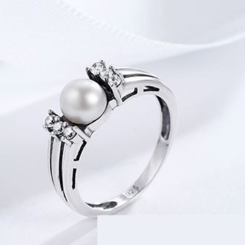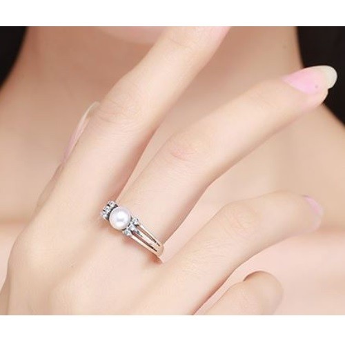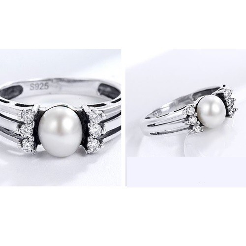 Strieborný prsteň zdobený bielymi sladkovodnými perlami a kamienkami certifikované menovkou a/alebo puncovou značkou Všetky naše strieborné výrobky sú kontrolované oddelením registrácie, kontroly a inšpekcie drahých kovov a majú svoje vlastné Striebro rýdzosti 925 s menom a/alebo puncom. Registračné číslo licencie našej spoločnosti na distribúciu drahých kovov: PR7959.