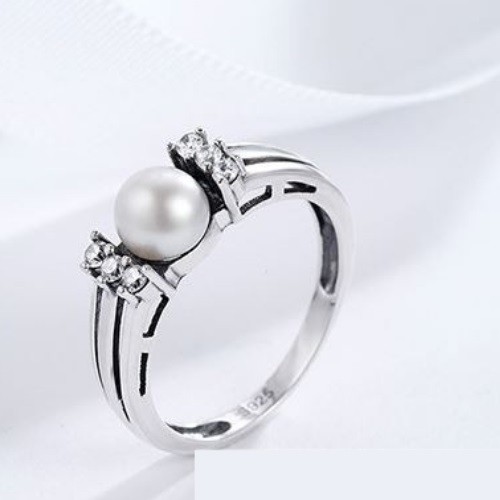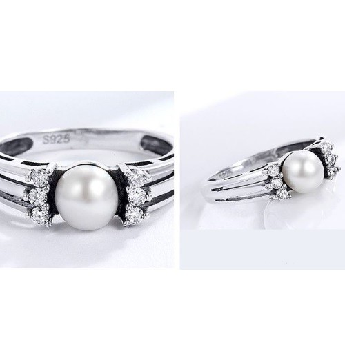 Strieborný prsteň zdobený bielymi sladkovodnými perlami a kamienkami certifikované menovkou a/alebo puncovou značkou Všetky naše strieborné výrobky sú kontrolované oddelením registrácie, kontroly a inšpekcie drahých kovov a majú svoje vlastné Striebro rýdzosti 925 s menom a/alebo puncom. Registračné číslo licencie našej spoločnosti na distribúciu drahých kovov: PR7959.