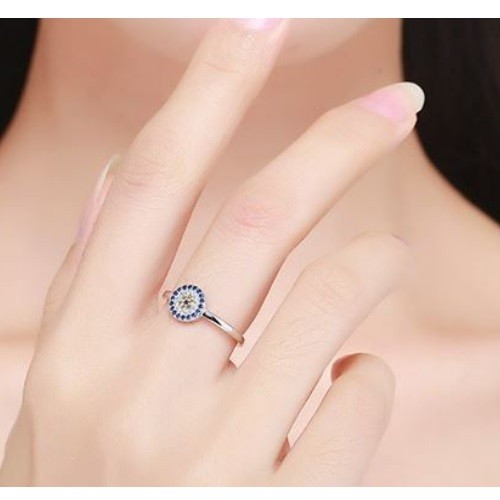 Strieborný prsteň s motívom modrých očí, veľkosť 6