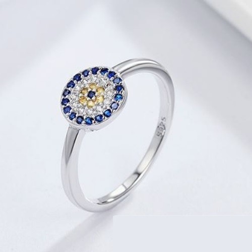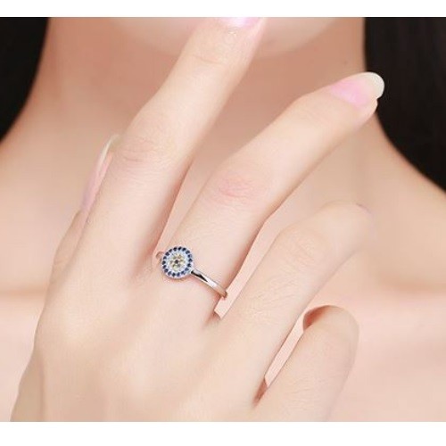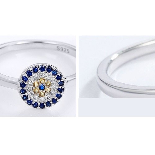 Strieborný prsteň s motívom modrých očí, veľkosť 7