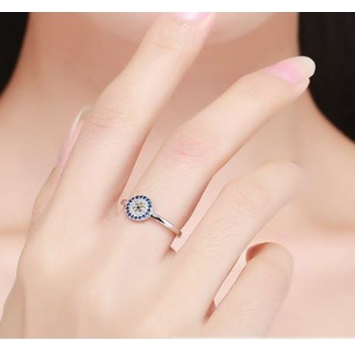 Strieborný prsteň s motívom modrých očí, veľkosť 8