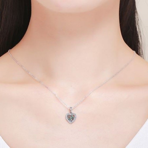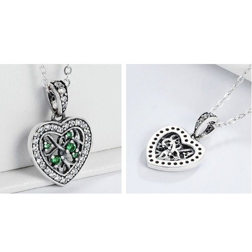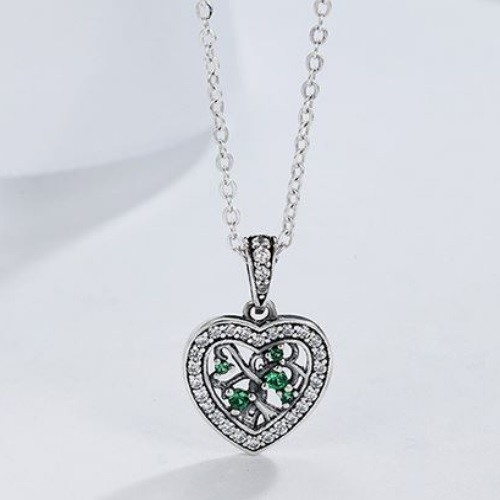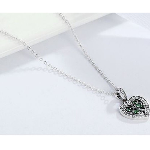 Strieborný náhrdelník s príveskom strom života v srdci, zelená