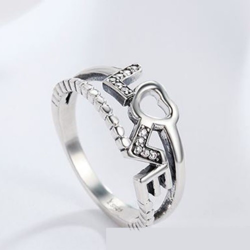 Strieborný prsteň s motívom LOVE, veľkosť 8