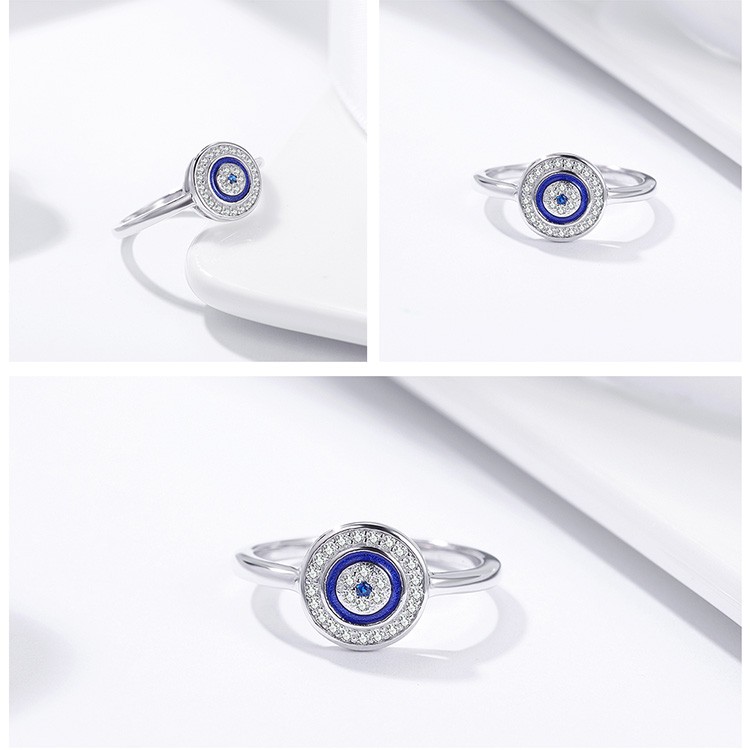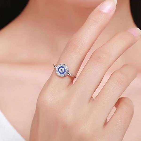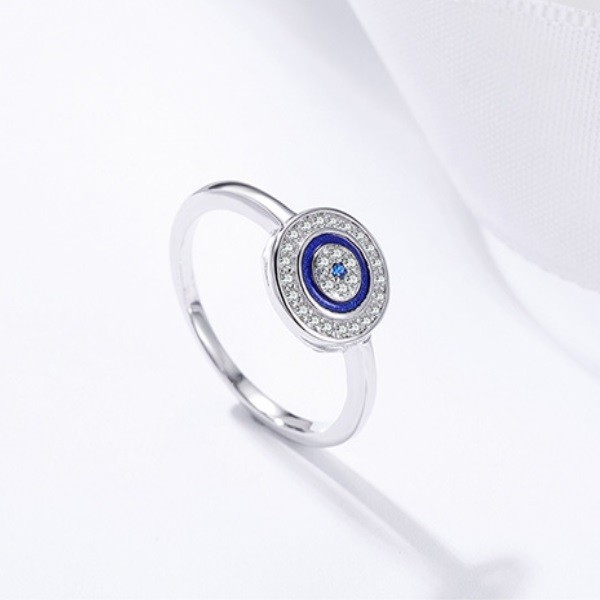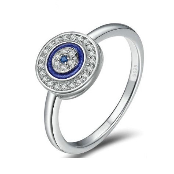 Špeciálny strieborný prsteň so sústrednými kruhmi, zdobený modrými a bielymi kryštálmi zirkónu. Priemer prsteňa je 0,12 cm a hmotnosť 1,34 g. Veľkosť motívu je 1 x 1 cm, váha prsteňa 2 g, hrúbka 0,2 cm.