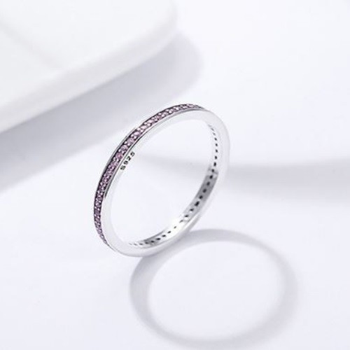 Strieborný prsteň s kryštálmi, fialový, veľkosť 6