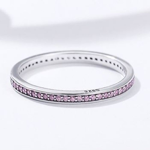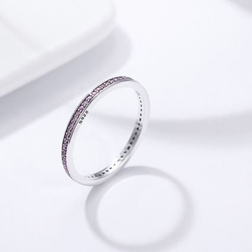 Strieborný prsteň s kryštálmi, fialový, veľkosť 7