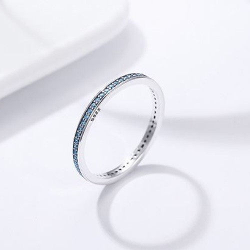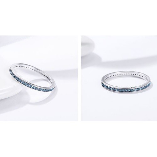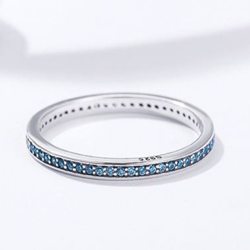 Strieborný prsteň s kryštálmi, modrý, veľkosť 6