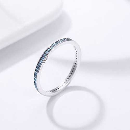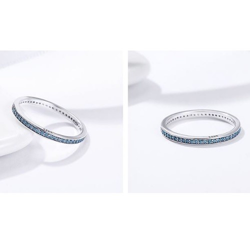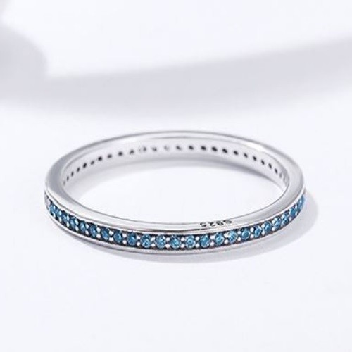 Strieborný prsteň s kryštálmi, modrý, veľkosť 7