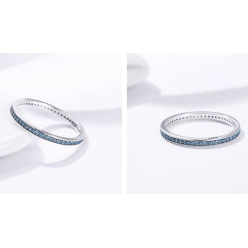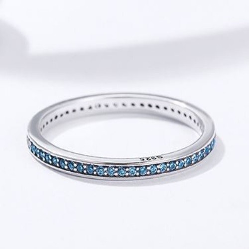 Strieborný prsteň s kryštálmi, modrý, veľkosť 8