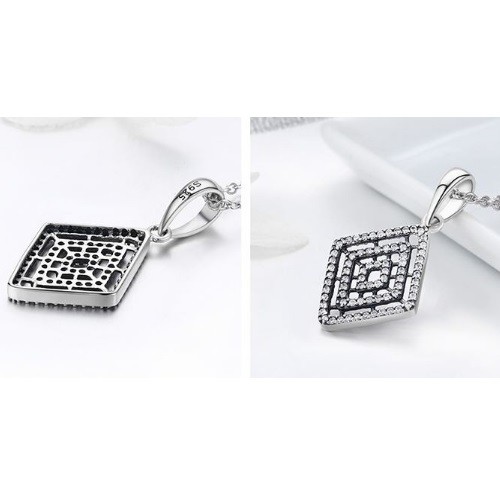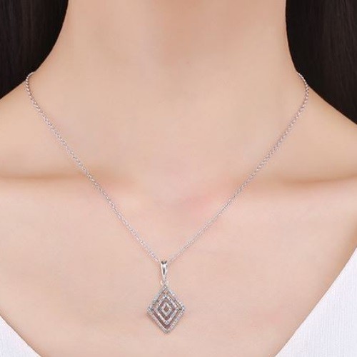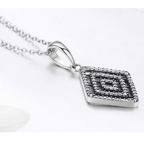 Strieborný náhrdelník s kryštálovým príveskom v tvare kosoštvorca