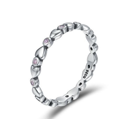 Strieborný prsteň s kryštálmi, fialový, veľkosť 6
