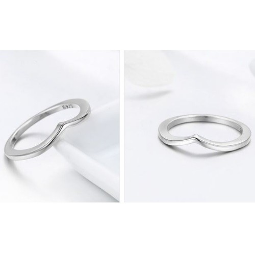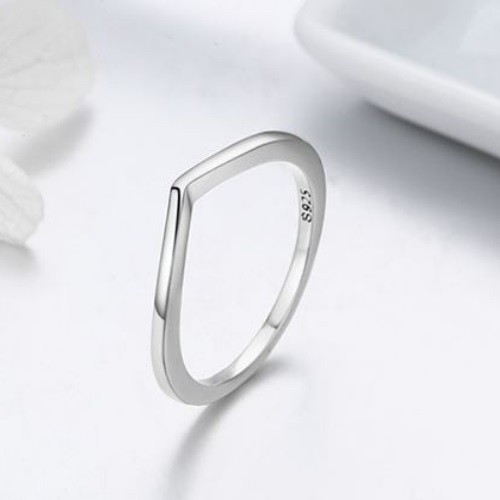 Dámsky prsteň zo striebra nepravidelného tvaru. Jeho šírka je 0,2 cm, hmotnosť 1,8 g.
