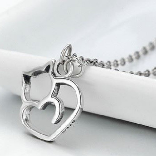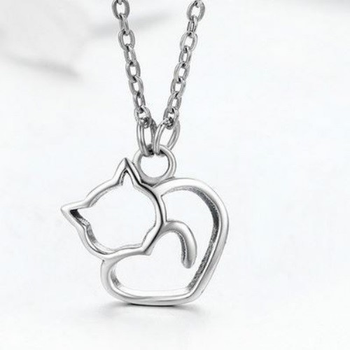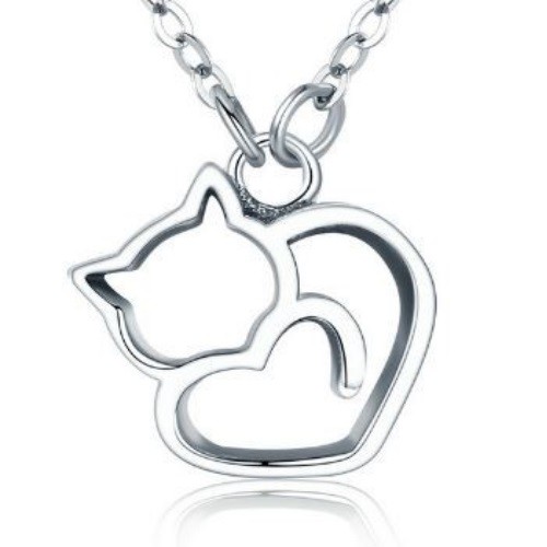 Strieborný náhrdelník zdobený príveskom v tvare mačky. Dĺžka 38-45 cm, váha 1,9 g Veľkosť prívesku je 1,1 x 1,1 cm.