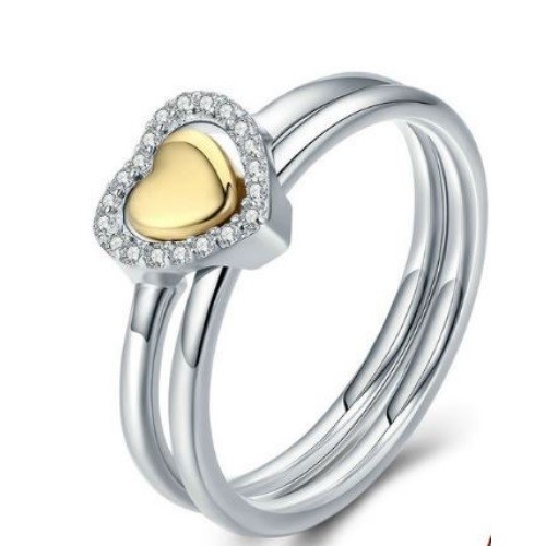 Strieborný prsteň s ozdobou v tvare srdca, veľkosť 6