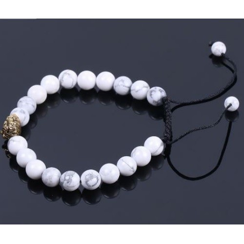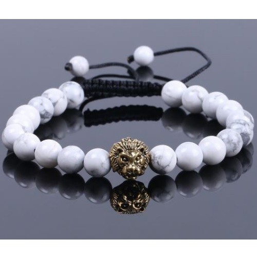 Náramok vyrobený z 8 mm howlitových korálok a prívesku s hlavou leva. Howlit reguluje metabolizmus a znižuje zadržiavanie tekutín. Je považovaný za kameň pre tých, ktorí majú problémy s hmotnosťou, pretože pomáha pri chudnutí a detoxikácii. Reguluje rovnováhu kyselín, pomáha pri pálení záhy, črevných poruchách a nevoľnosti. Rozpúšťa naše blokády, ktoré spôsobujú zábrany a komplexy.