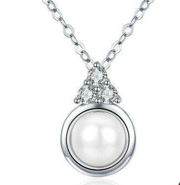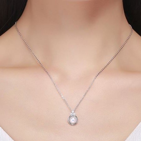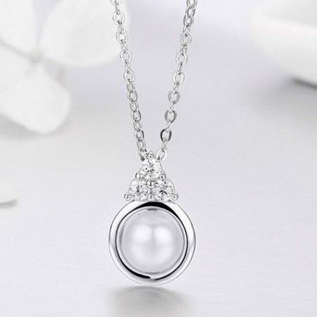 Strieborný náhrdelník s okrúhlym príveskom a perlou, biela
