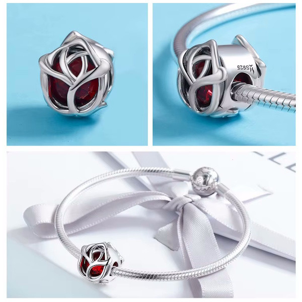 Ezüst charm, rózsa