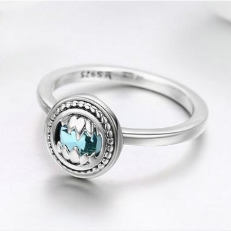 Strieborný prsteň s modrým kryštálom, veľkosť 6