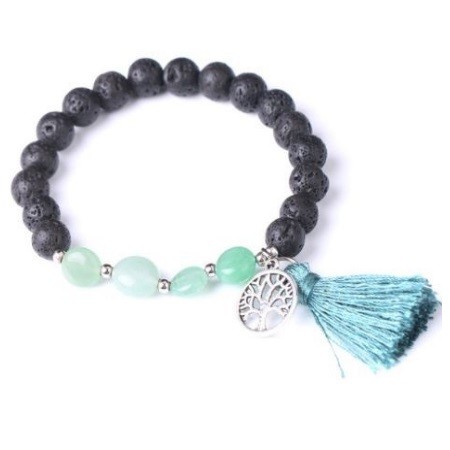 Mala vyrobená z 8 mm čiernych korálok z lávového kameňa, zeleného avanturínu a podobných farebných strapcov. Liečivý účinok avanturínu na fyzickej úrovni možno najlepšie opísať jeho pozitívnym účinkom na našu pokožku. Používa sa pri liečbe alergií, vyrážok, ekzémov a akné. Jednoducho sa dotknite povrchu pokožky, ktorú chcete ošetriť. Môže byť účinným pomocníkom aj pri črevných ťažkostiach; dá sa s ním úspešne liečiť aj hnačka a zápcha.