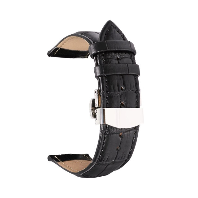 Kožený remienok na hodinky s motýlikovou sponou, 18 mm, čierny