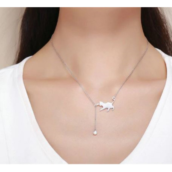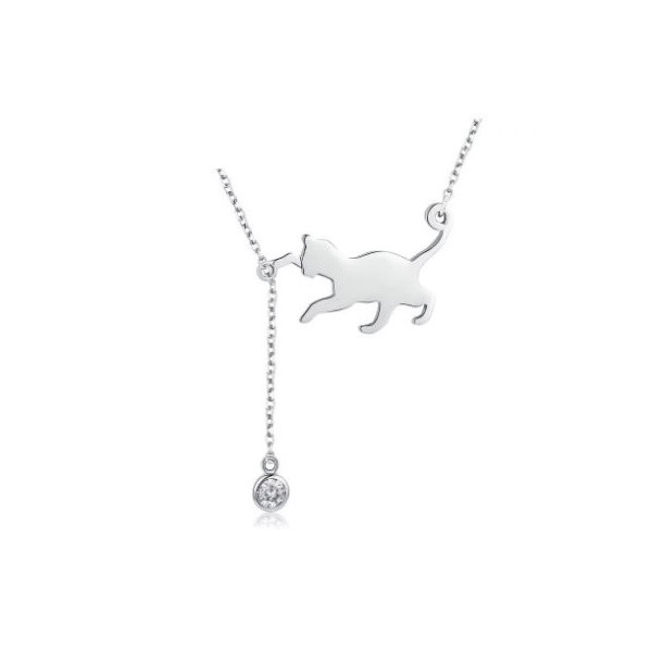 Strieborný náhrdelník s príveskom mačky