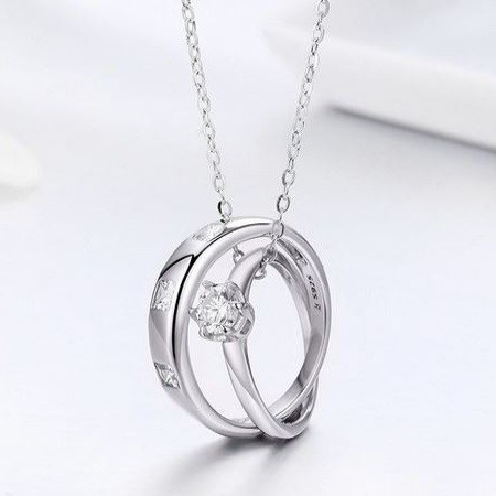 Strieborný náhrdelník s príveskom s dvojitým prsteňom